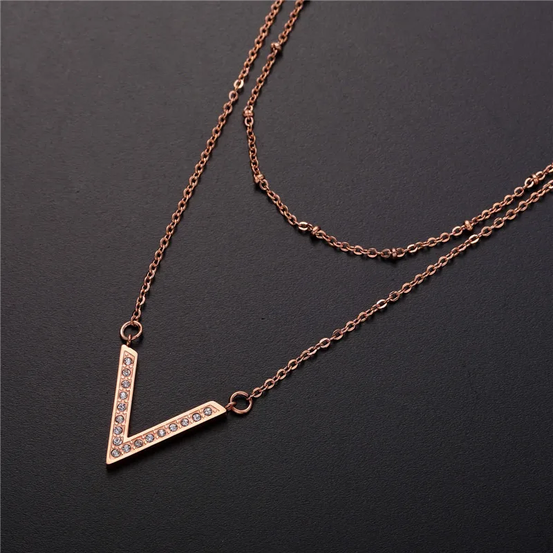 Vshaped Pendant Necklace For Women Titanium Steel Cz Rose Gold Color Lady's Clavicle Chain