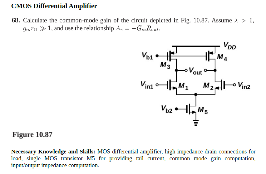 Solved CMOS Differential Amplifier 68. Calculate the