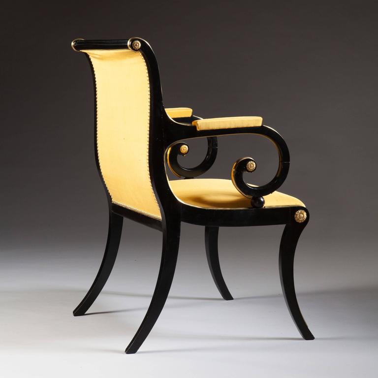 Antique Regency Ebonised and Brass Desk Chair For Sale at 1stDibs
