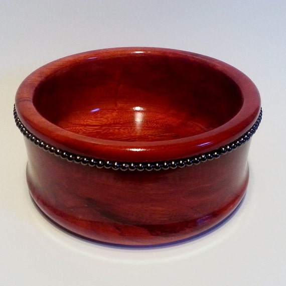 Beaded Red Dyed Wood Bowl Lathe Turned Wood Bowl