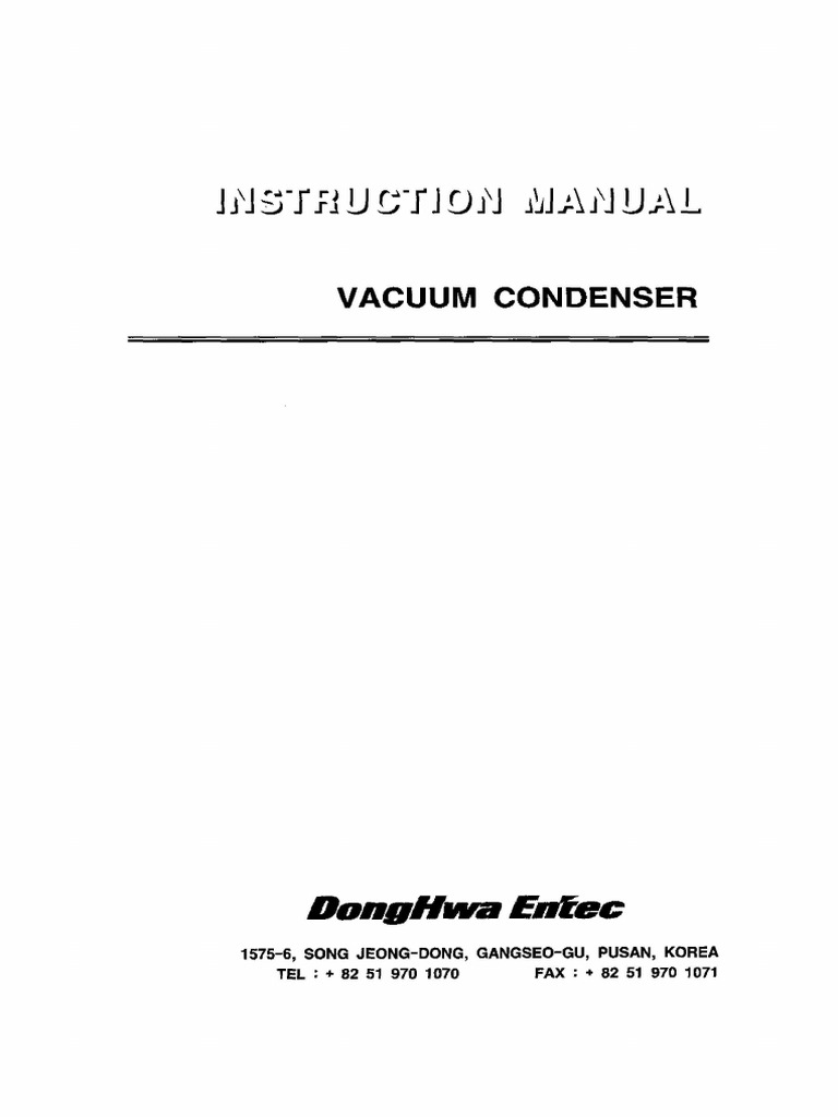 Instruction Manual Vacuum Condenser PDF Vacuum Vacuum Tube
