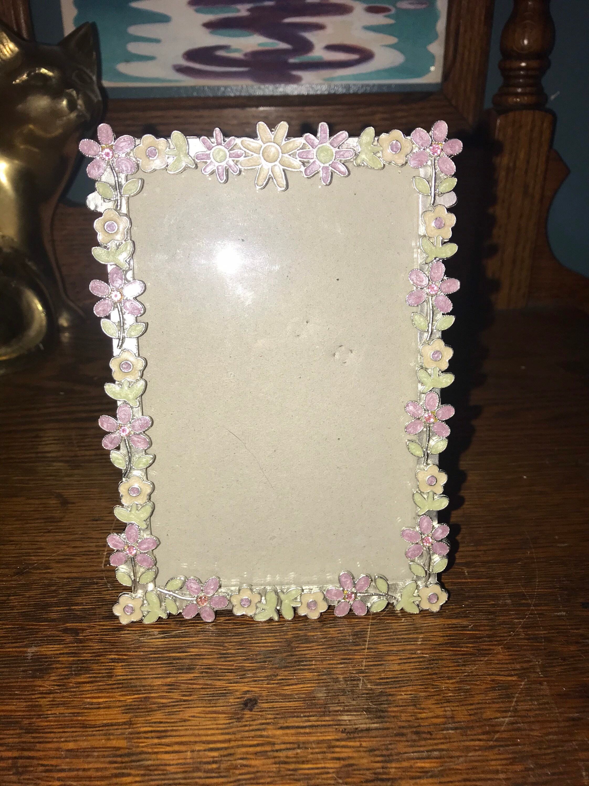 Vintage Silver 4 x 6 Frame. Vintage 1990’s Silver And Enamel Flowers