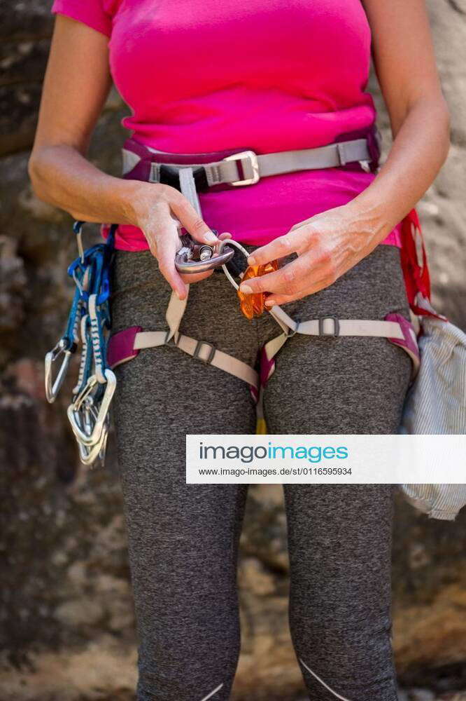 Close up climbing equipment Close up climbing equipment on a woman