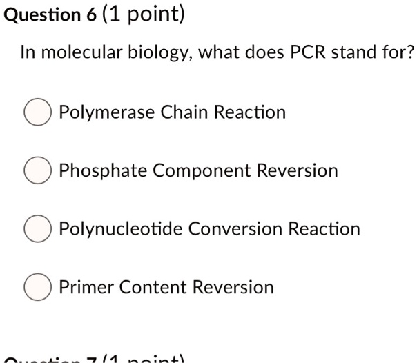 SOLVED Question 6 (1 point) In molecular biology, what does PCR stand