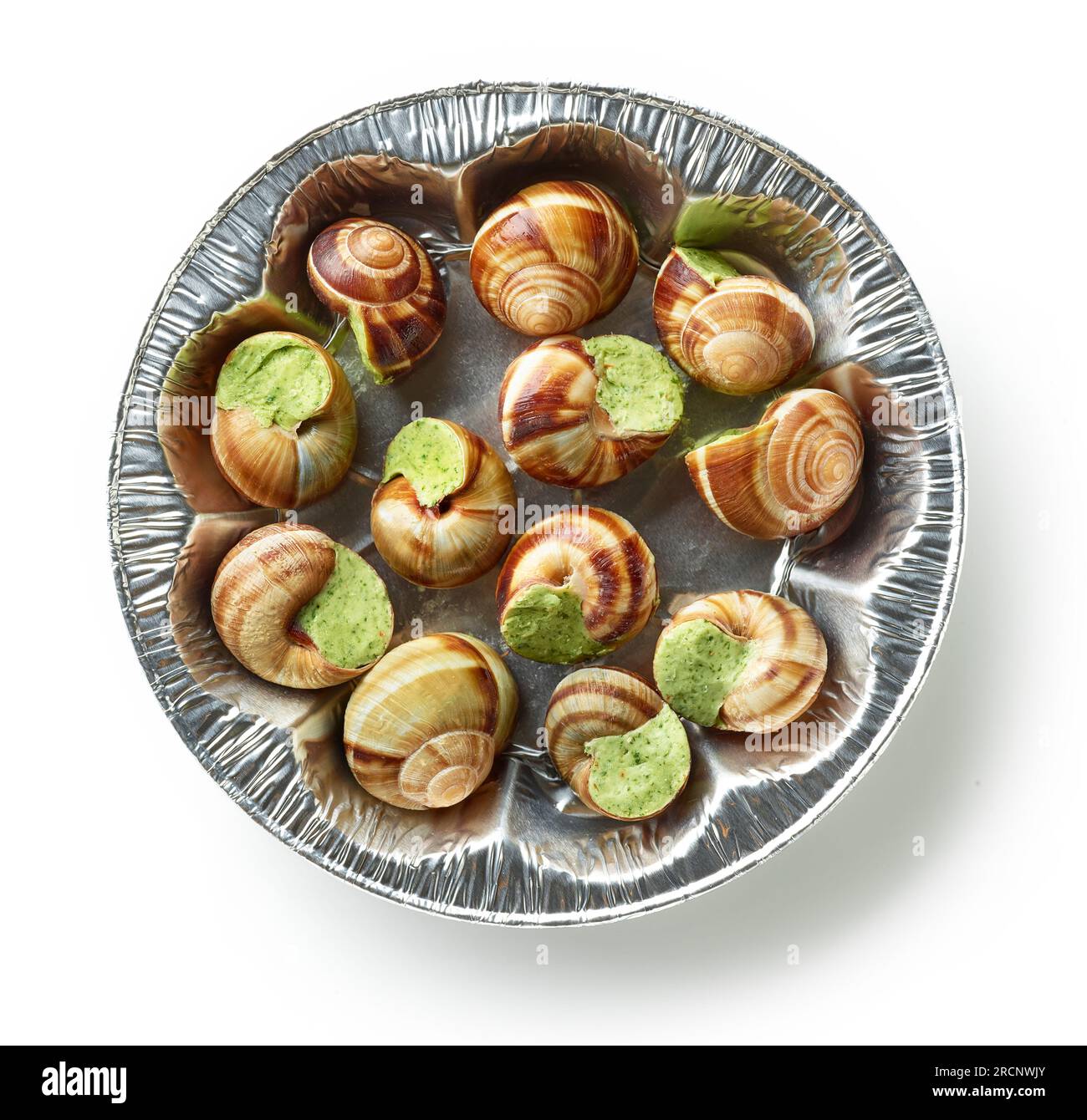 escargot snail filled with garlic and parsley butter isolated on white