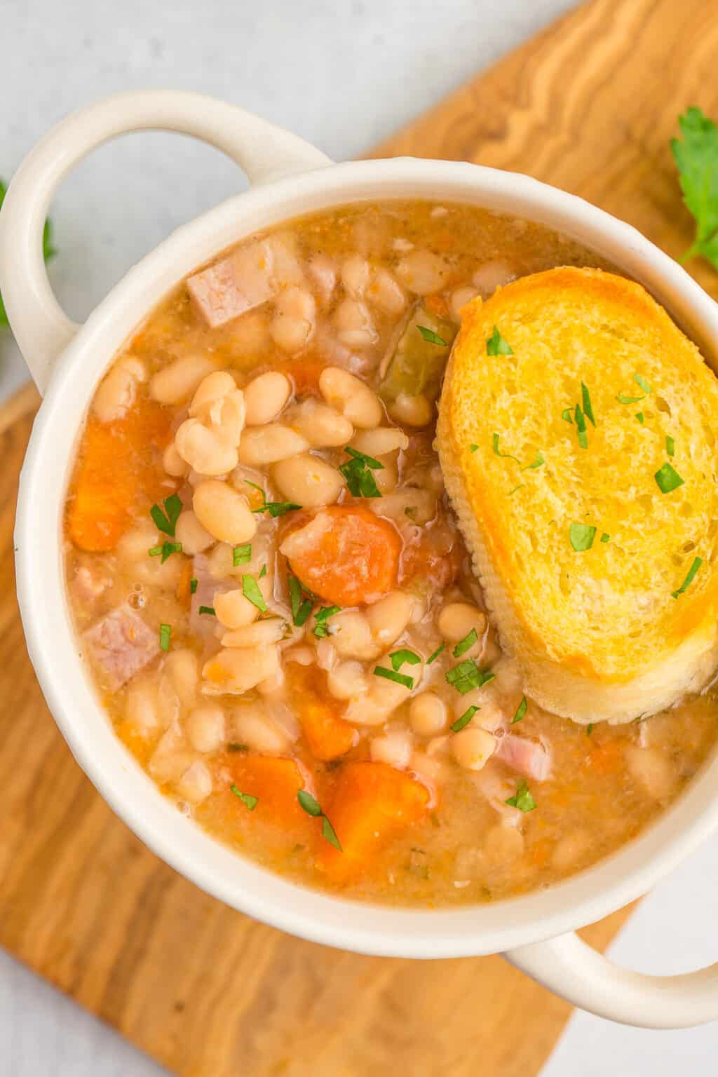 Crockpot Ham and Bean Soup Sparkles to Sprinkles Homemade Ham And Beans This recipe for slow cooker ham and beans is cooked low and slow with onions, celery, carrots, and ham making for a delicious bowl of creamy beans filled with savory, smoky. You can also make extra and freeze it up for later. This ham and beans recipe combines great northern beans with leftover. Plenty of beans, tender chunks of carrot,. Homemade Ham And Beans.