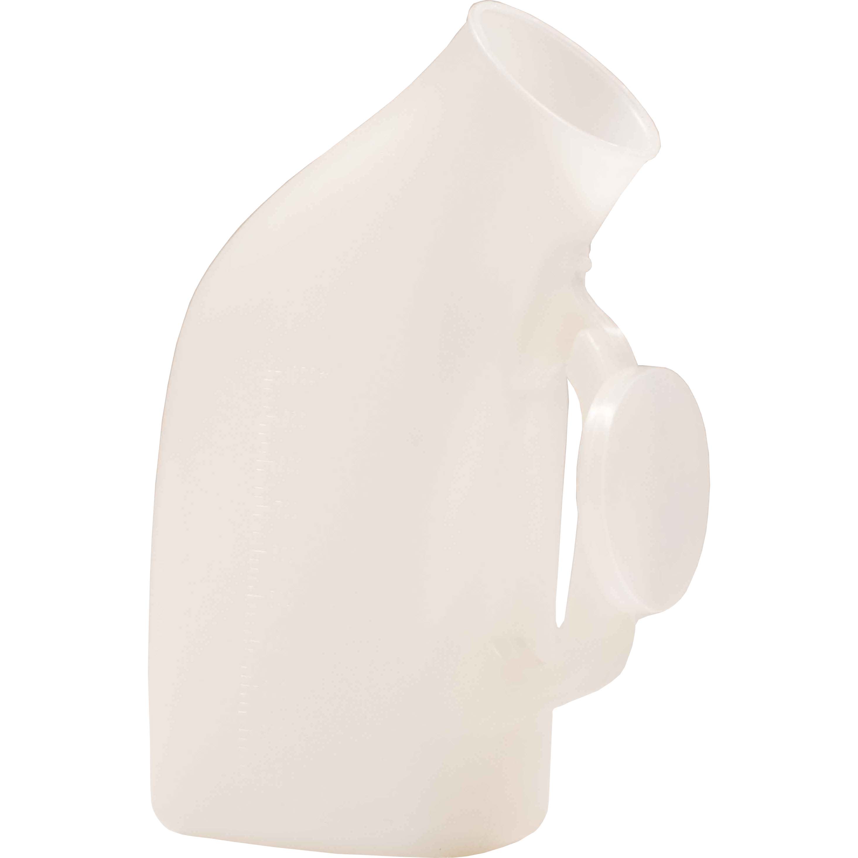 Mens Urinal Bottle With Lid . Unisex urinal with a 1 litre capacity for use at home or whilst travelling. Made from moulded clear plastic, this male urinal bottle has a built in handle for ease of use and transportation, and a snap on lid, with a good seal, to prevent any spillages. Scale for measuring volume and unisex adaptor included. Portable male urinal with ergonomically angled design, carry handle, and lid. Perfect for travel, camping, festivals, as well as keeping handy by. 1m+ visitors in the past month 1m+ visitors in the past month
