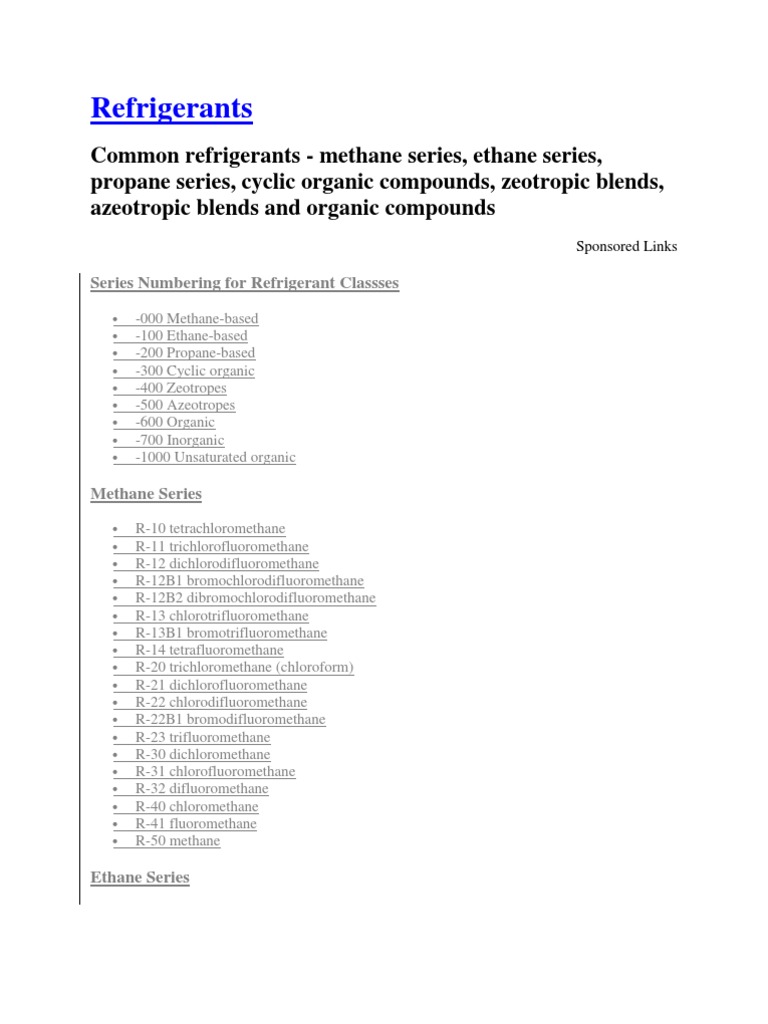 Refrigerants PDF Gases Chemical Compounds