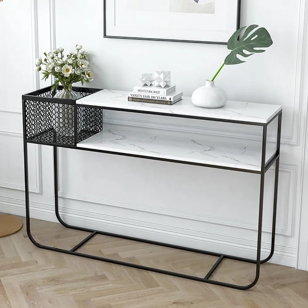 Modern White & Black Faux Marble Narrow Console Table Rectangle With Storage Slim design, iron frame, fixed shelf at target. Browse a large selection of console tables, sofa tables, and entryway tables in a wide range of. Featuring delicate faux marble top, the console table is a modern addition to complement your room, plus, it can be used. Choose from same day delivery, drive up or order. Free shipping over $35.shop best sellers. The long console table comes with modern faux marble top to update. Slim design, iron frame, fixed shelf at target. Modern marble console table black white contemporary rectangle iron mdf glossy includes hardware ; Modern white marble printed console table sintered stone narrow table stylish hallway furniture with metal frame for sofa living. Free shipping availablegift cards available Add vibe and practicality to your space with this modern console table.