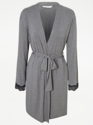 Grey Lace Trim Dressing Gown Women at ASDA