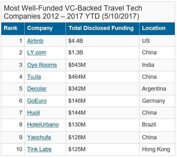 Half of the world's ten mostfunded travel firms are from China