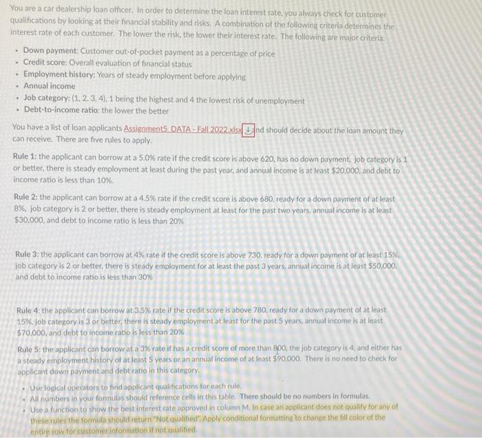 Solved You are a car dealership loan officer. In order to