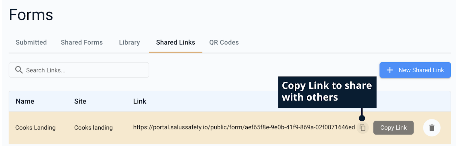 Shared links for forms SALUS