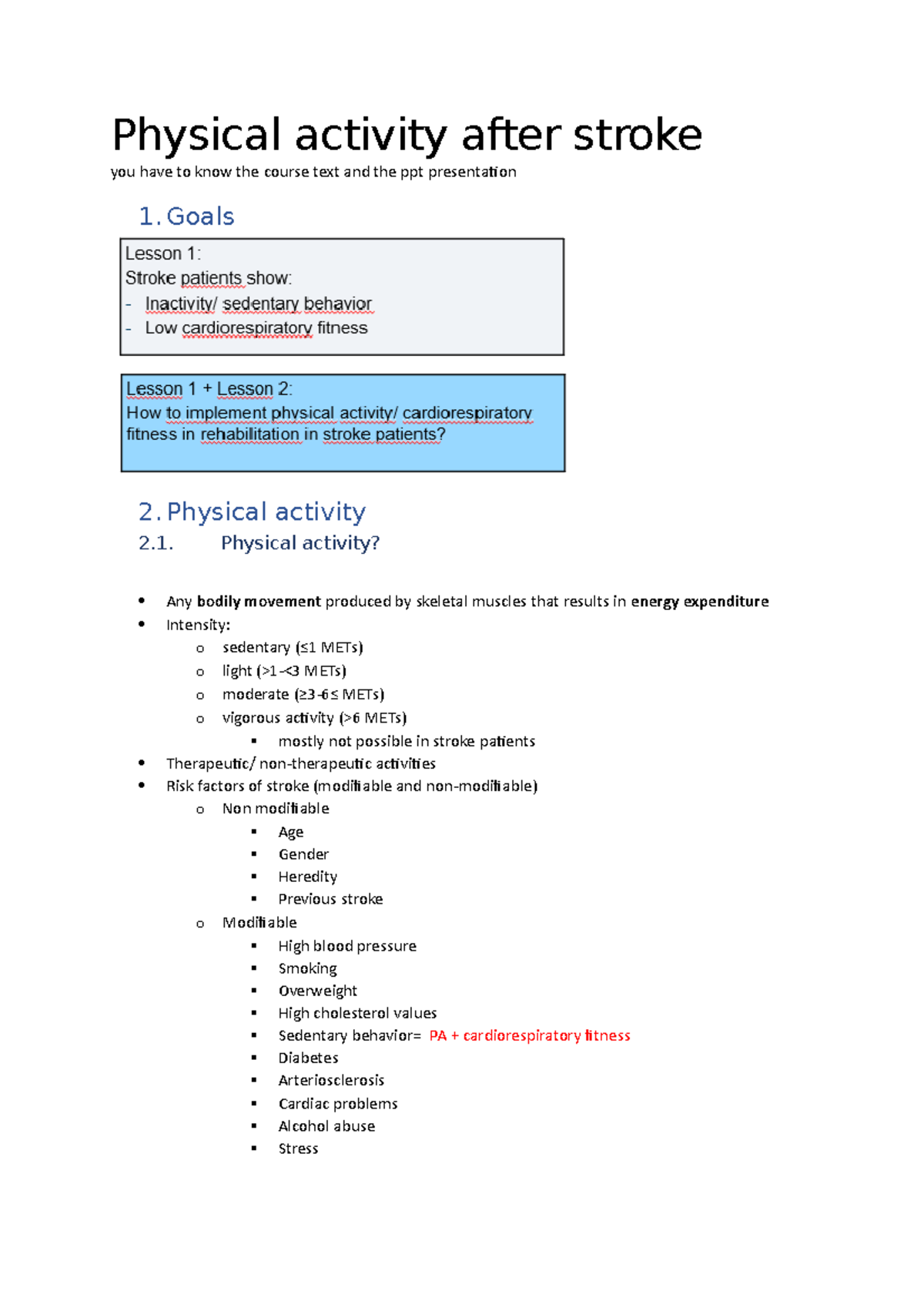Physical activity after stroke Physical activity? Any bodily movement