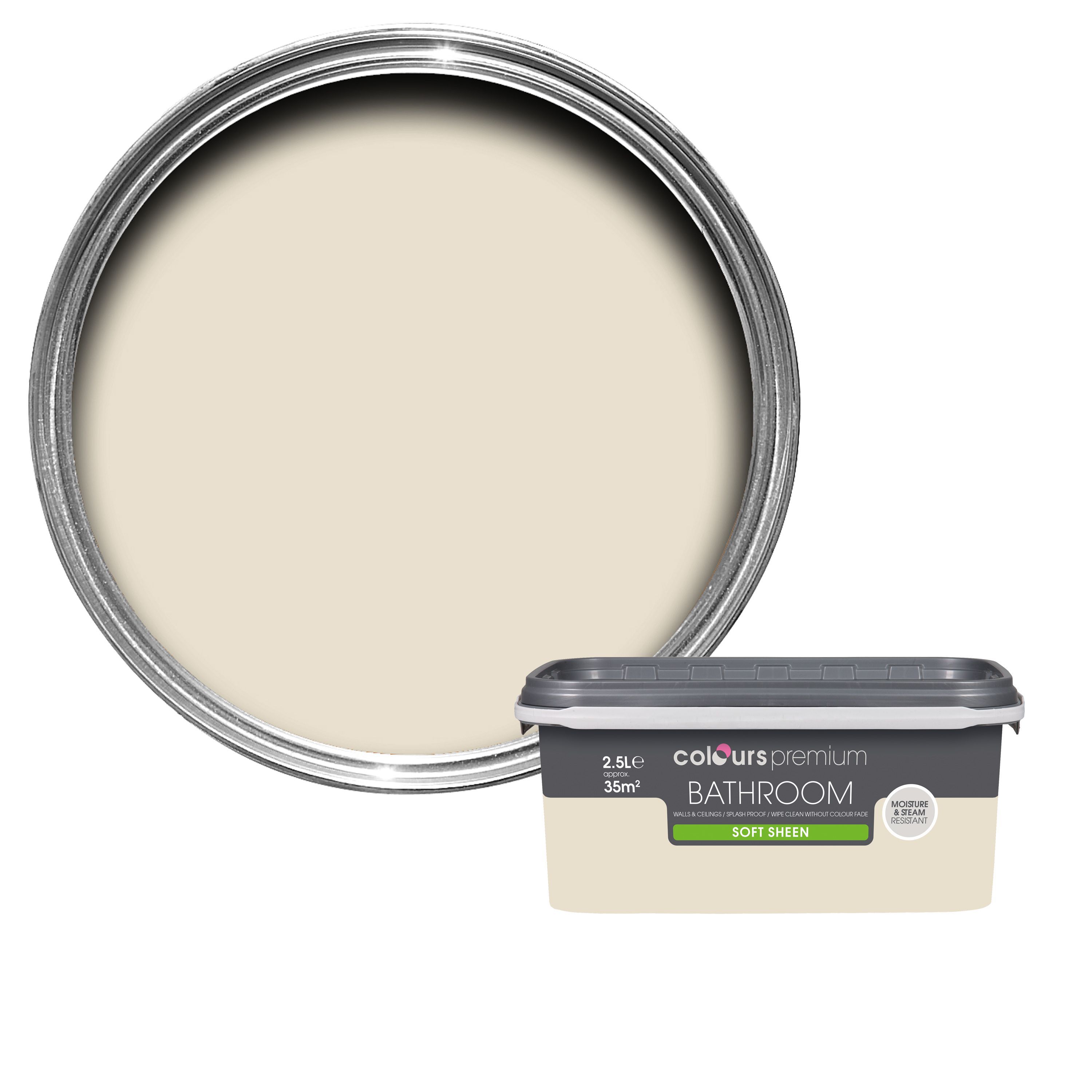 Colours Bathroom Ivory Soft sheen Emulsion paint 2.5L Departments