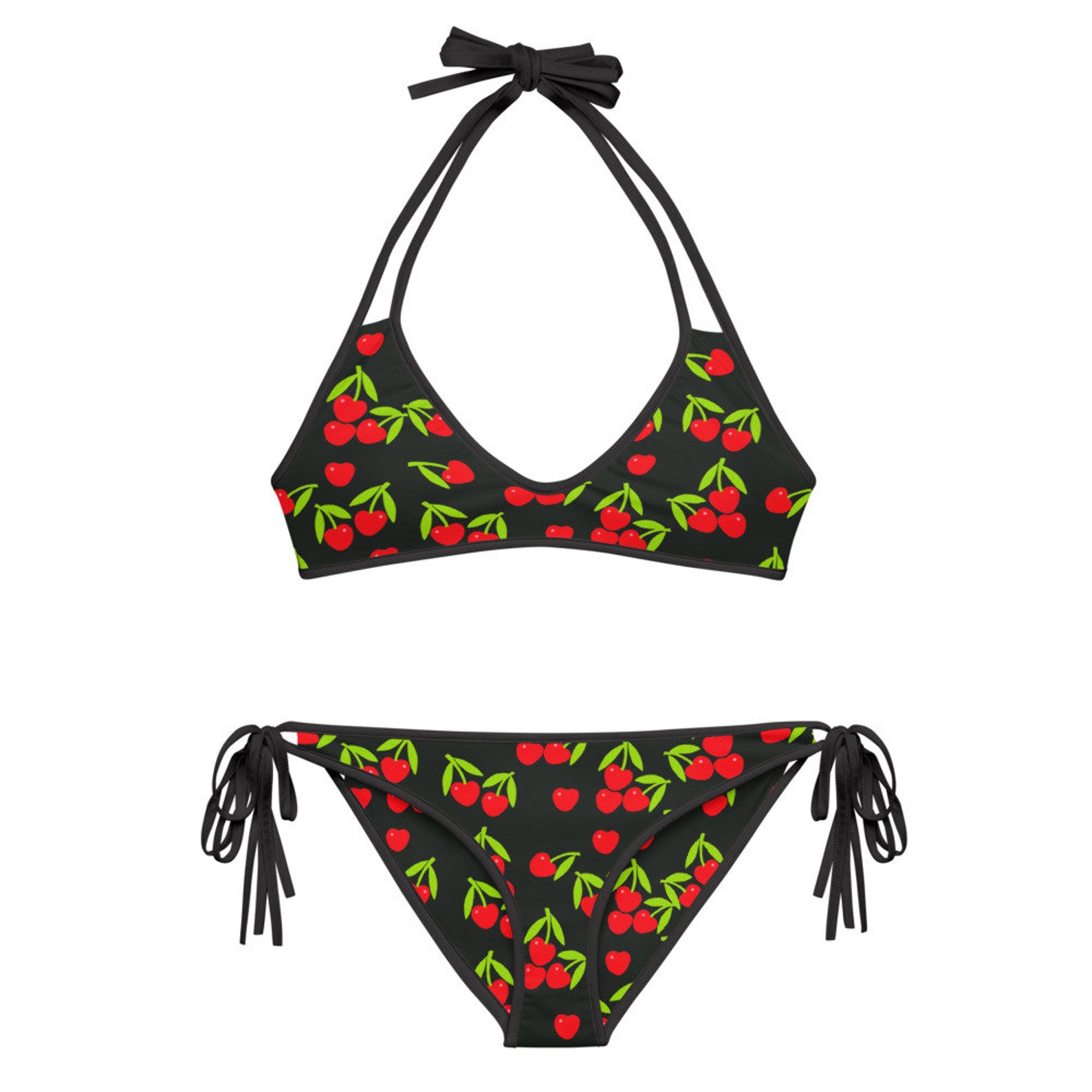 Ahh Sweet Cherries Black Bikini Etsy Cherries Bikini Women's cherry bikinis & swimsuits. Soft blue and white striped red cherry print lycra bikini with double layered ruffle collar, crossover straps and frill to waist, finished with a large. From cherry bikinis for pool parties to lemon bikinis for summers in italy, you're all set for summer with this fruit swimwear edit. Shop our latest berry cherry design now. Cherries Bikini.
