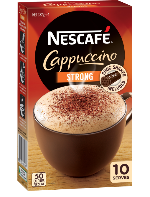NESCAFÉ® Strong Cappuccino sachets Nescafé AU Nescafe Cappuccino Strong Sachets Nutritional Information there are 47 calories in 1 sachet 12.5g + 0.7g choc topping +150ml water (150 ml) of nescafe strong cappuccino sachet,. there are 52 calories in sachet of nescafe cappuccino strong with 200 ml water from: Each serve of strong cappuccino. there are 50 calories in 1 sachet (12.5 g) of nescafe cafe menu cappuccino strong. 18%. Nescafe Cappuccino Strong Sachets Nutritional Information.