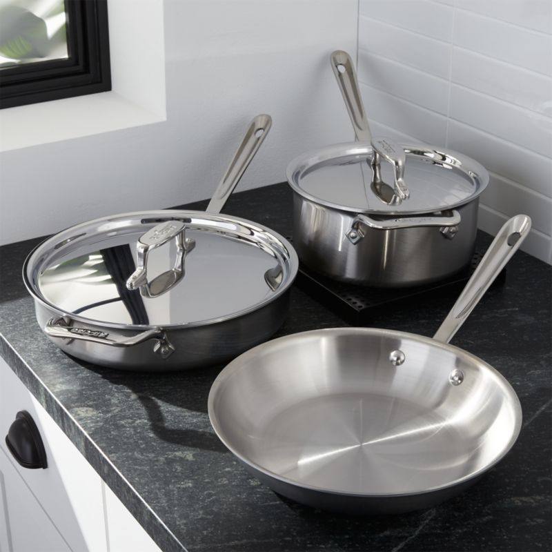 AllClad d5 Brushed Stainless Steel 5Piece Cookware Set + Reviews Crate & Barrel