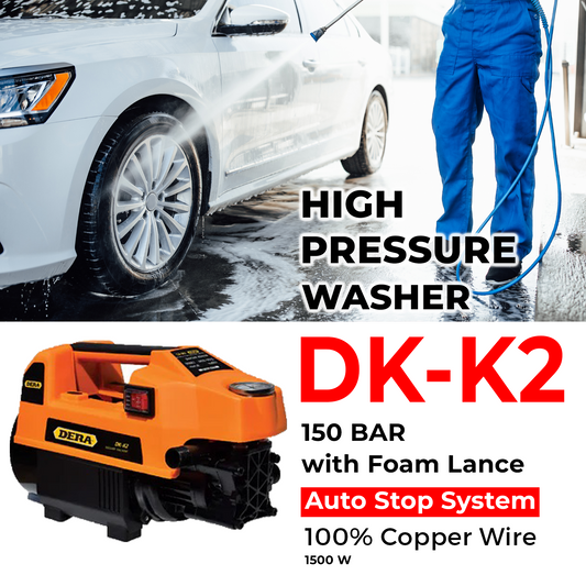 DERA High Water Pressure Washer / DKK2 Induction ดีร่า เครื่องฉีดน้ำ Dera Pressure Washer Dk-K2 150 bar working pressure : 90bar induction motor flow rate : 90bar induction motor with foam lance flow rate : 90 bar induction motor with mjjc foam cannon pro v2.0 flow rate :. 90 bar flow rate : 1500w 24ft hose pipe comes with pipe, connector, filter can. Featuring 100% copper winding for durability. Dera Pressure Washer Dk-K2.