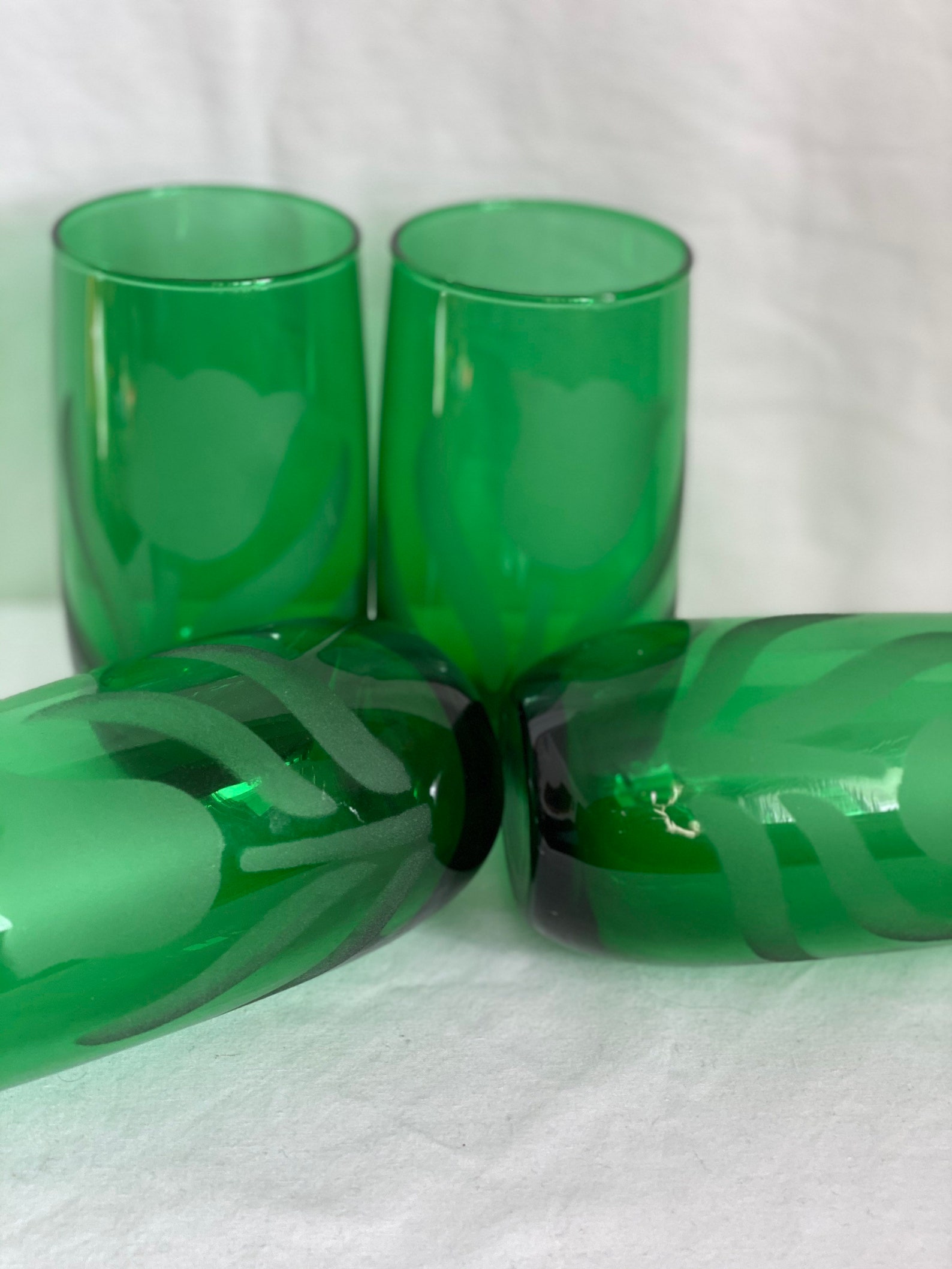 Vtg Frosted Tulip Emerald Green Drinking Glasses Etsy