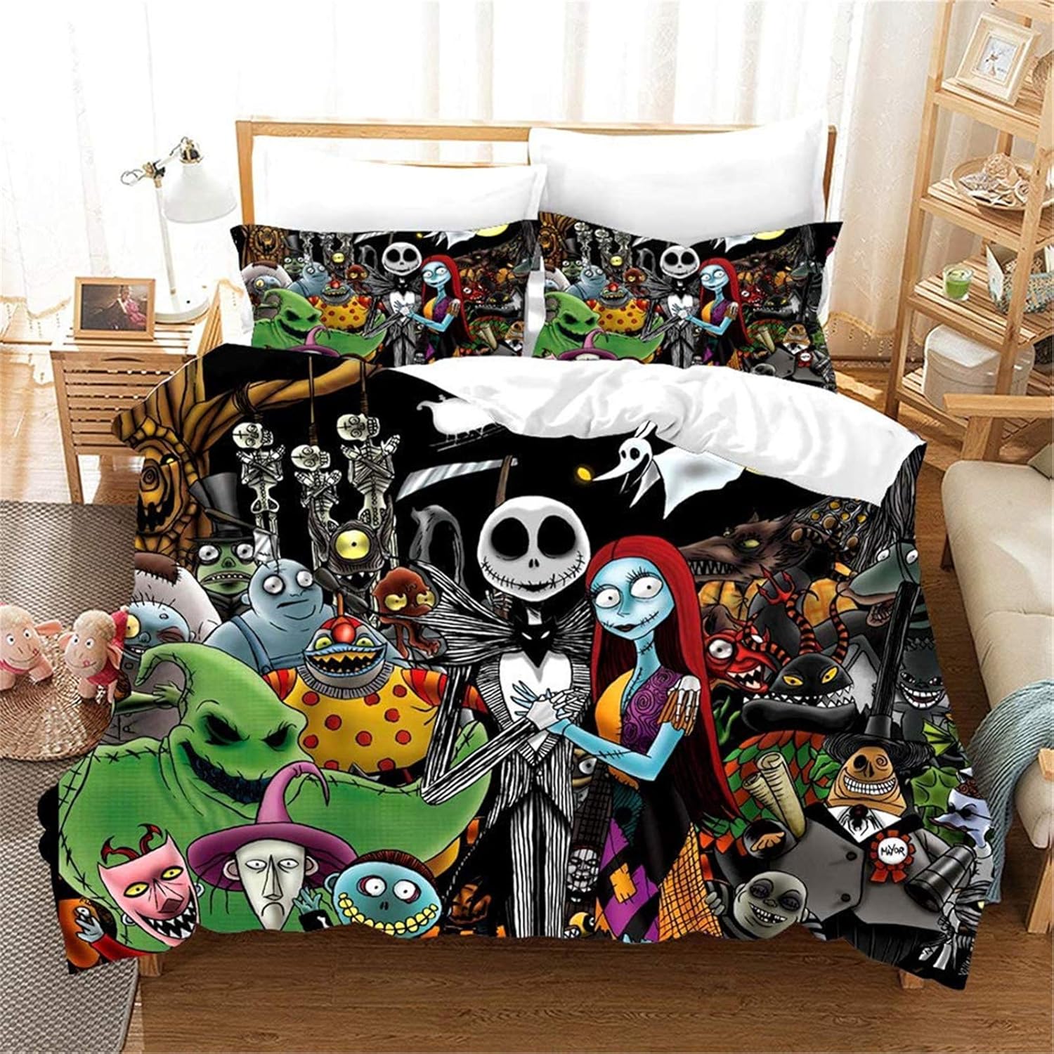 Nightmare Before Christmas Anime Skull Bedding Set 3 Pieces Halloween