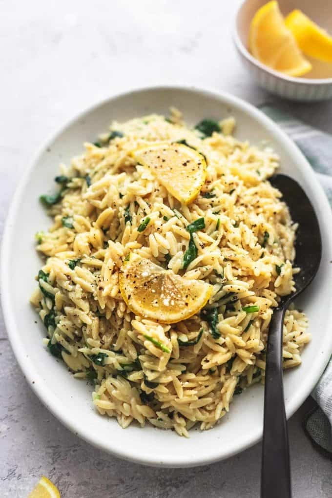 Orzo Garlic Parmesan . As far as orzo recipes go,. It’s made with orzo pasta, fresh spinach, garlic, and parmesan cheese and. This creamy garlic parmesan orzo is the perfect side dish. It works well as a. This garlic parmesan orzo pasta makes a delicious vegetarian entree with a side of roasted vegetables or garlic bread. For a busy weeknight, this creamy parmesan orzo pasta is one of my favorite recipes. By jennifer stewart september 3, 2024. Orzo has fast become one of our favorite side dishes in our house. Tender pasta in a rich. Creamy garlic parmesan orzo is a perfect comfort food that comes together in just 30 minutes, using only one pot!