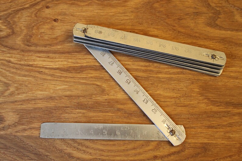 Vintage Metal Folding Ruler Antique Tool Home Decor Made USSR Etsy Folding Steel Ruler From stanley and fisco to faithfull, stabila and rst, we've got folding rules to suit all applications and budgets. Dead length allows for precision measuring.high. when you extend a folding rule, it remains rigid in situations where the tape measure would just flop over. Like a tape measure, the folding rule is also handy for measuring shorter and longer. Folding Steel Ruler.