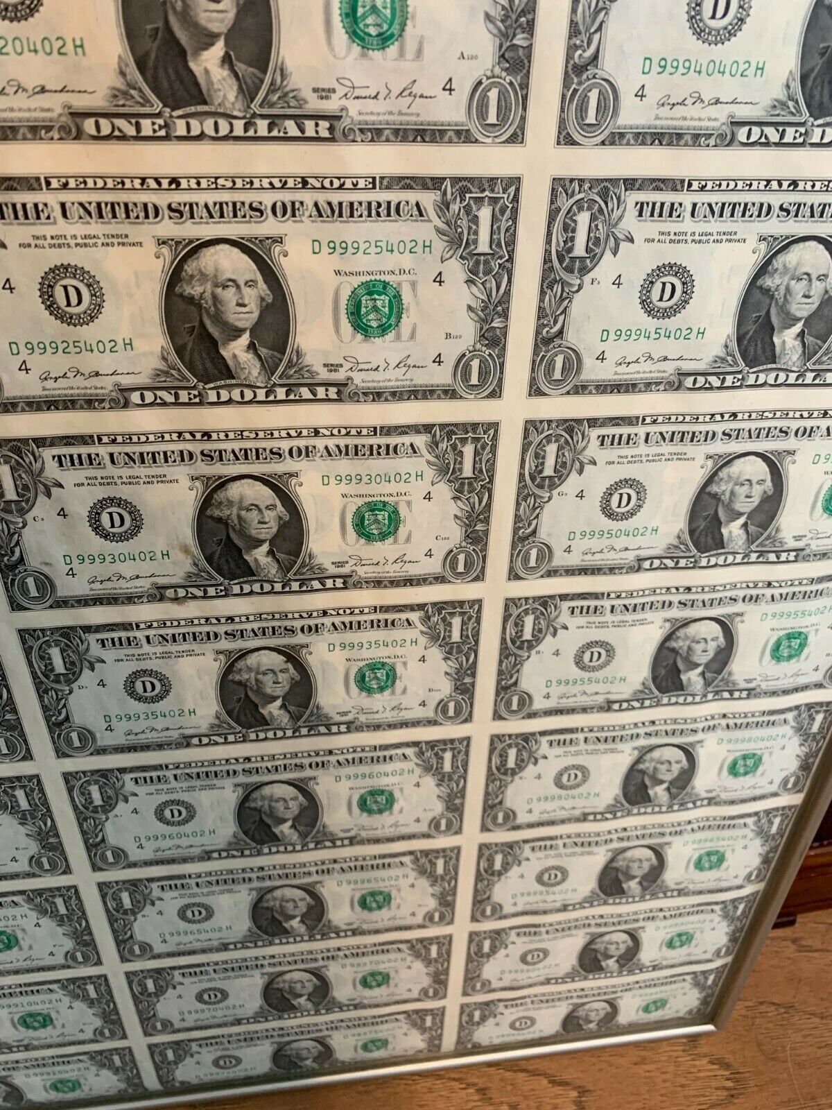 Framed uncut sheet of 1981 1.00 bills with free shipping Etsy