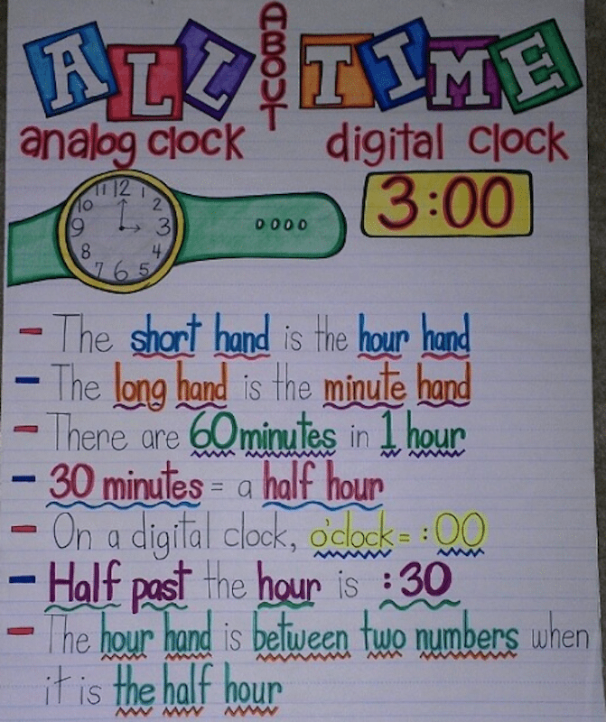 Telling Time Anchor Chart Anchor Chart Time What is an anchor chart? You can use these charts to teach vocabulary, explain concepts, illustrate examples, and make. Plus we offer examples from classrooms just like yours. Download free telling time anchor charts to help students learn how to read and write time. With the easy to cut design, these colorful and engaging anchor charts are the perfect tool. Anchor Chart Time.