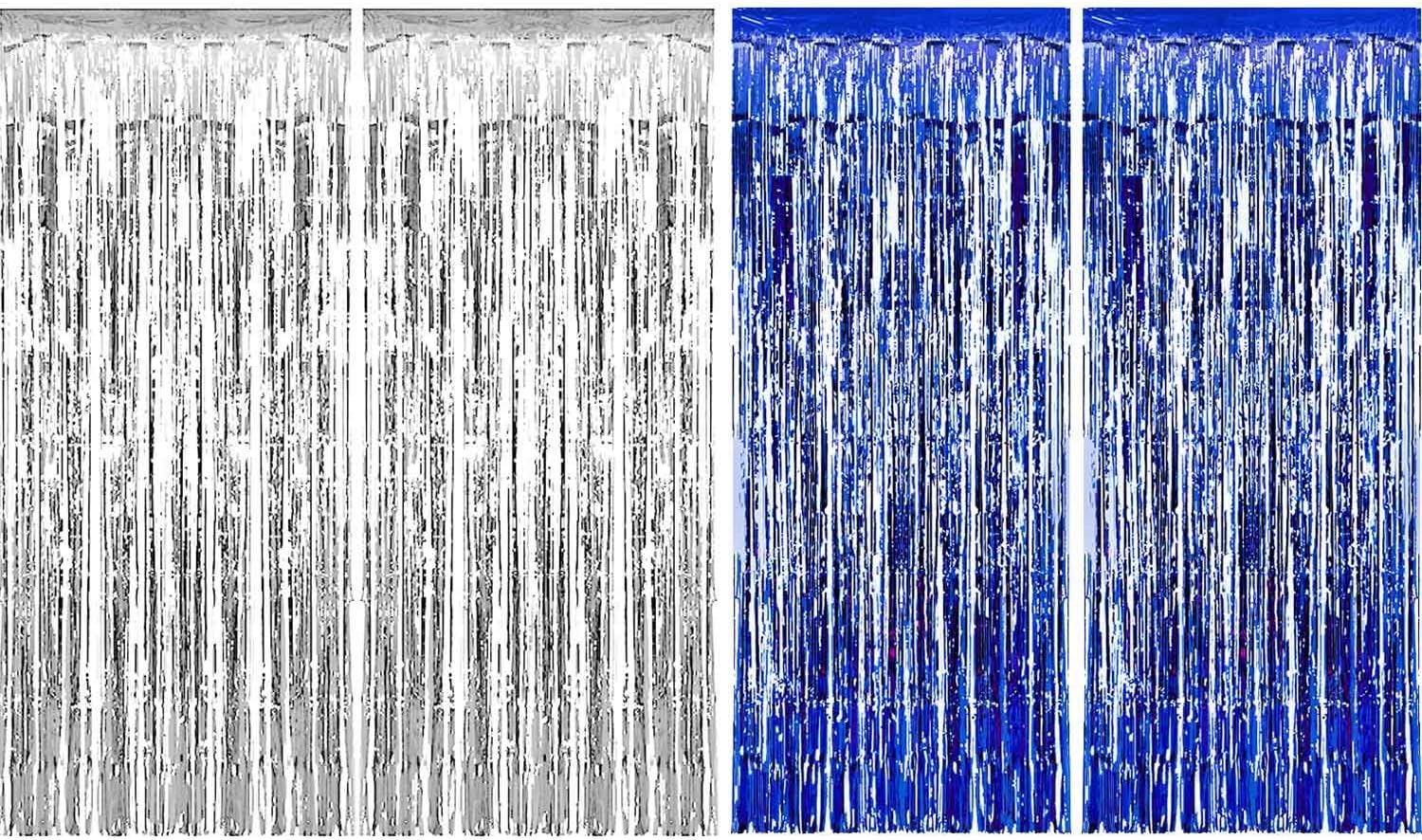 Sumind 4 Pack Foil Curtains Metallic Fringe Curtains