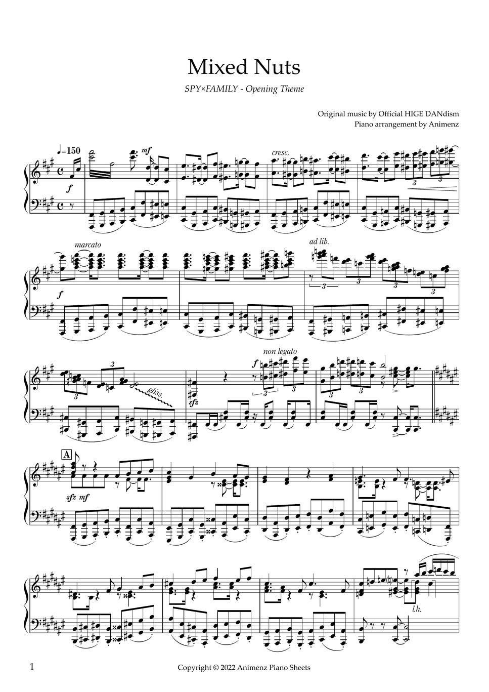 Official HIGE DANdism Mixed Nuts (Spy X Family OP) Sheet by Animenz