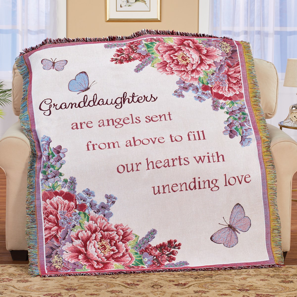 Granddaughters Are Angels Floral Tapestry Throw Blanket Collections Etc.
