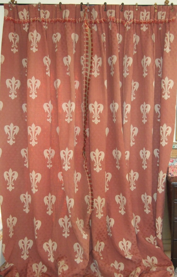 Antique French Chateau Curtains. Fleur de Lys Huge Drapes