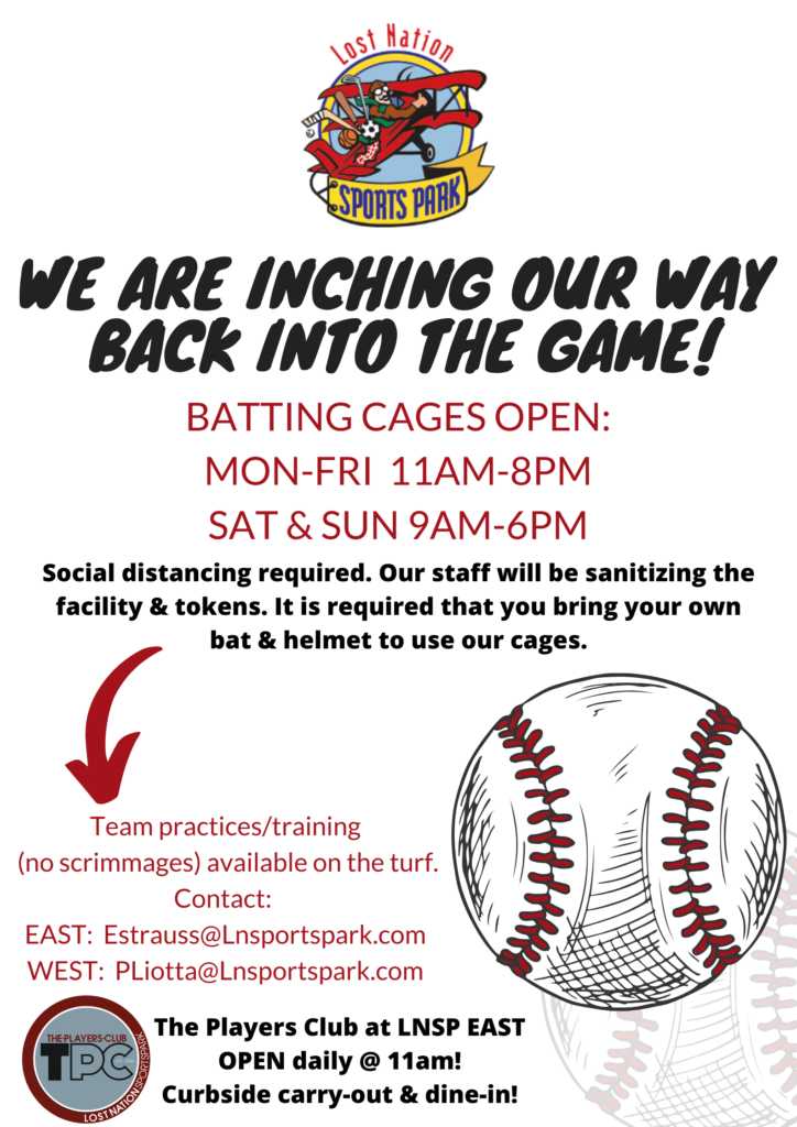 BATTING CAGES OPEN EAST & WEST Lost Nation Sports Park