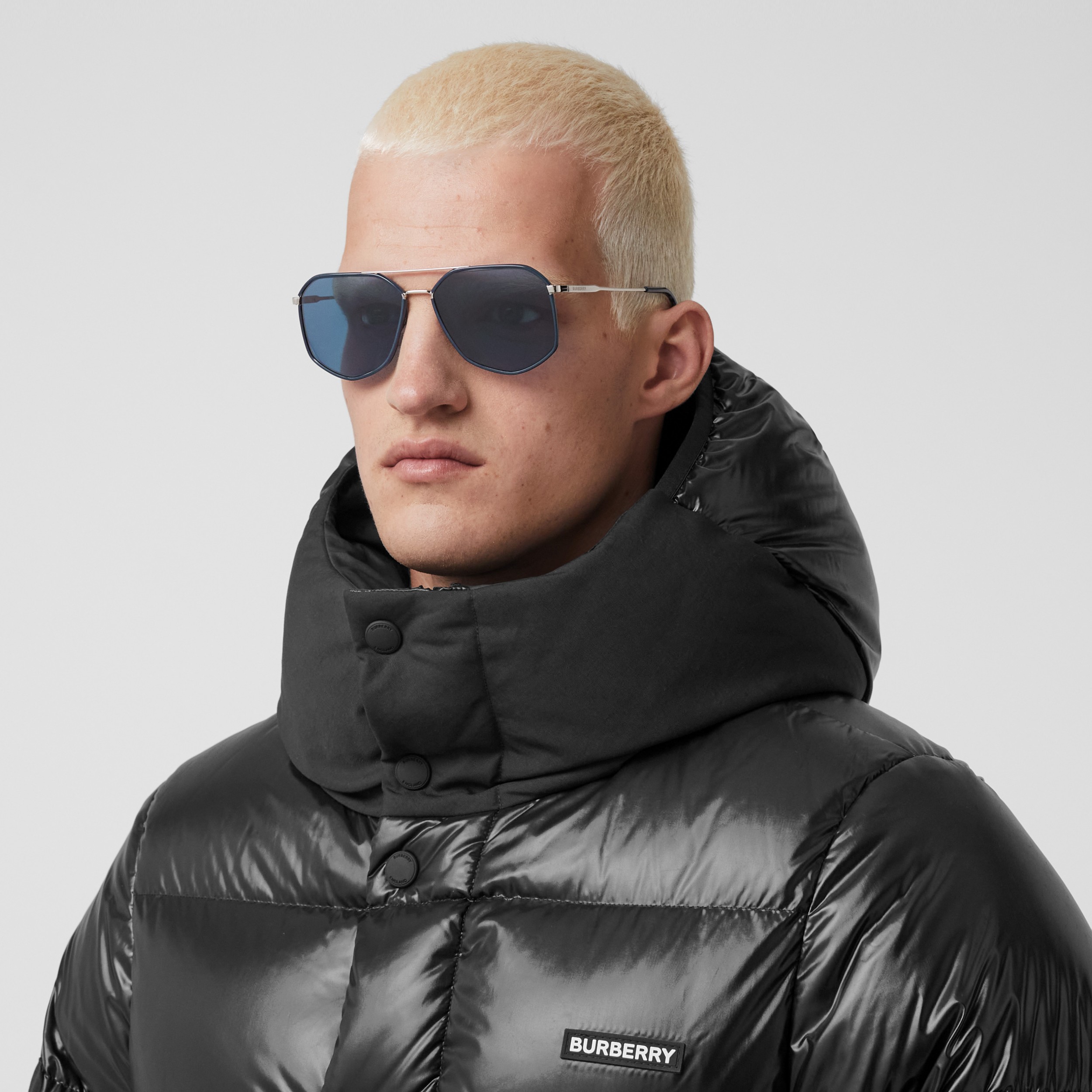 Geometric Frame Sunglasses in Silver Blue Men Burberry® Official