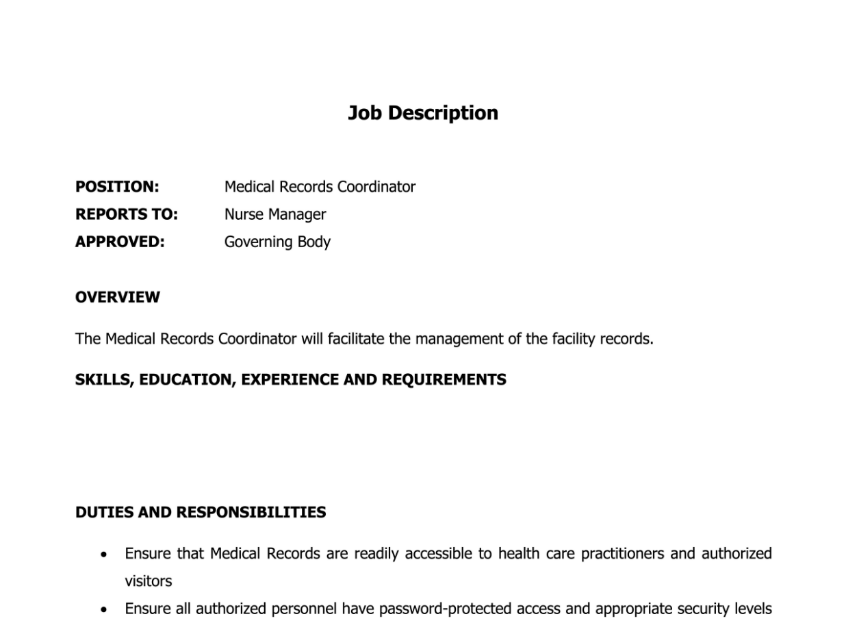 Medical Records Coordinator Job Description Template