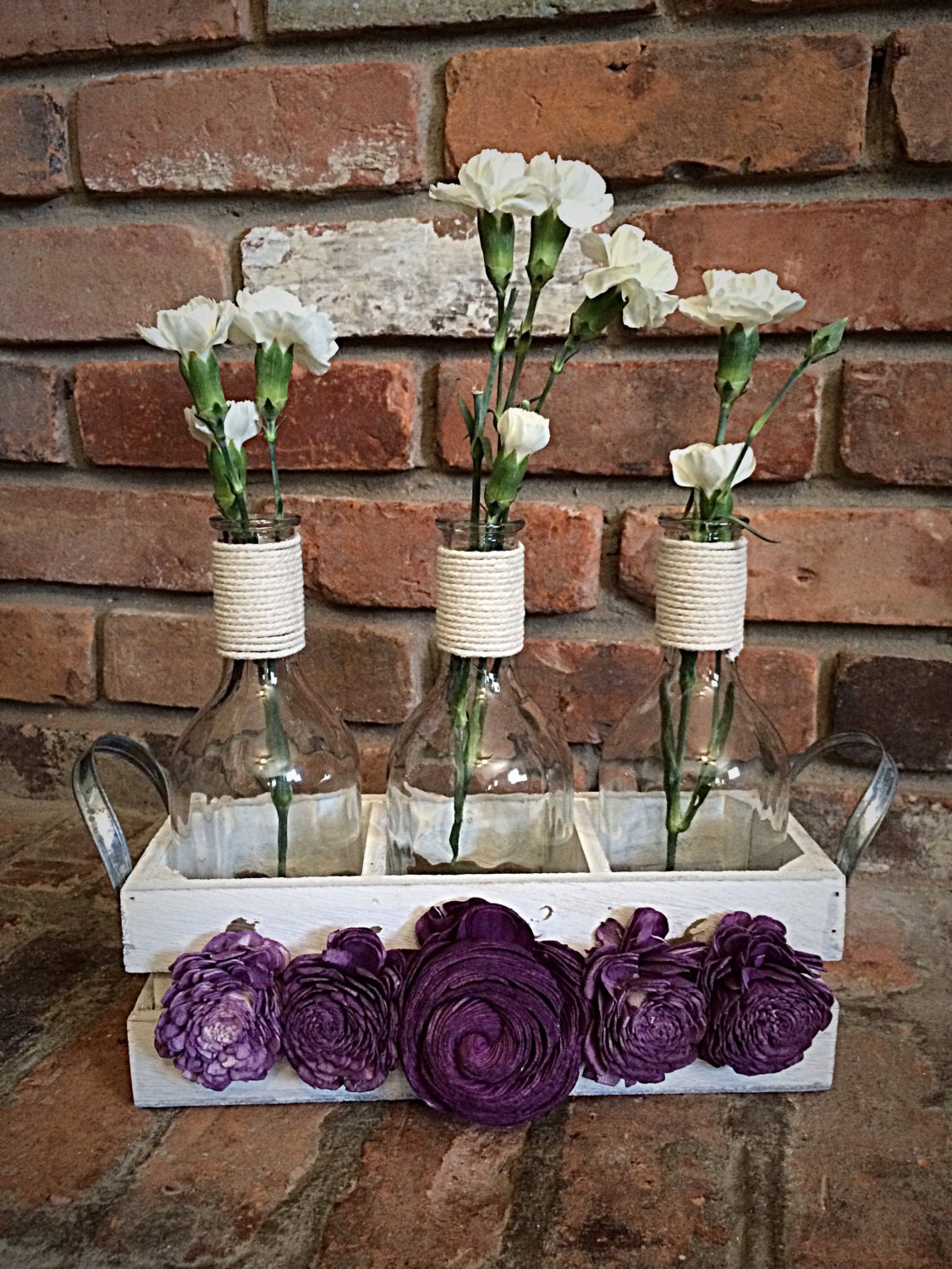 Set of 3 Vases with Wooden Tray Rustic Decor Rustic Wedding