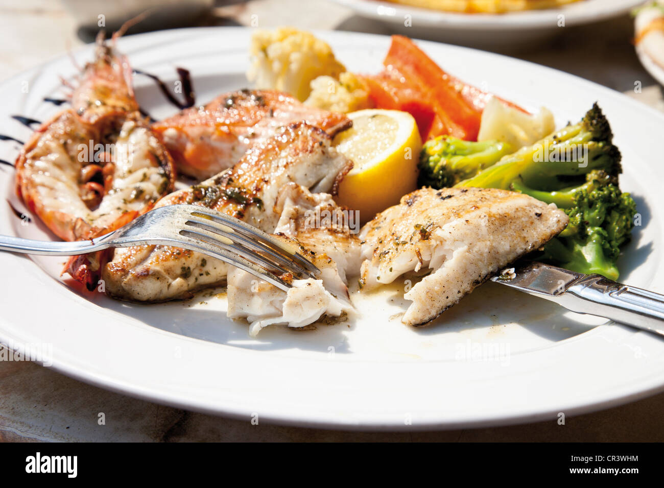 Fish platter, King Prawn, salmon, red mullet, pikeperch fillet
