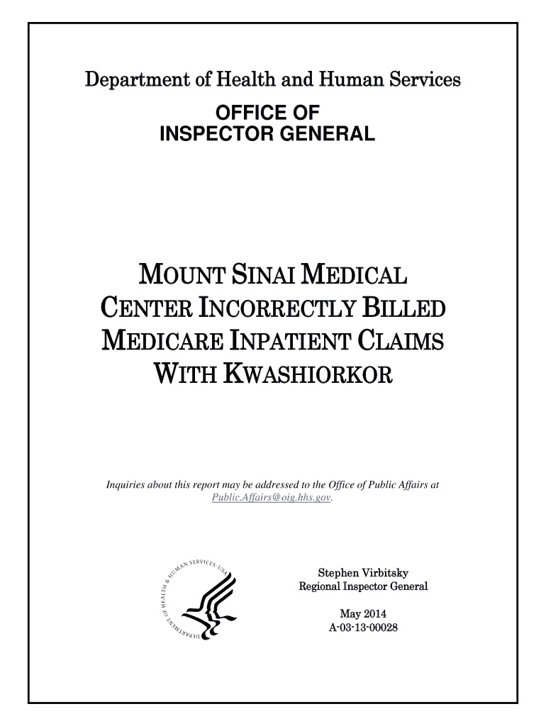 Fillable Online oig hhs Mount Sinai Medical Center Incorrectly Billed