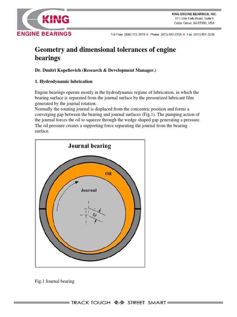 Geometry and Dimensional Tolerances of Engine Bearings Bearing