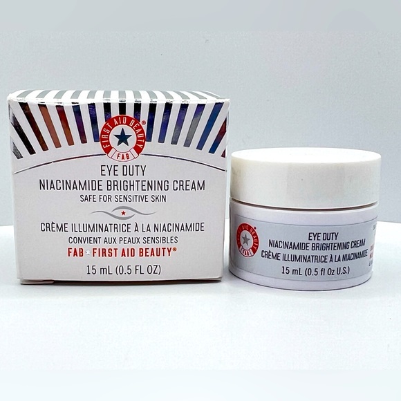 FIRST AID BEAUTY EYE DUTY NIACINAMIDE BRIGHTENING EYE CREAM BEST EYE First Aid Eye Duty Niacinamide Helps fade the look of dark circles over time: Massage into the under eye and extend to the upper cheek. Eye duty niacinamide brightening cream, illuminating eye cream for dark circles and puffiness, 0.5 oz. This illuminating eye cream instantly brightens, hydrates and smooths the eye area while helping to reduce the appearance of dark circles over time; This illuminating. First Aid Eye Duty Niacinamide.