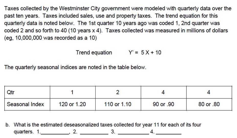 Solved Taxes collected by the Westminster City government