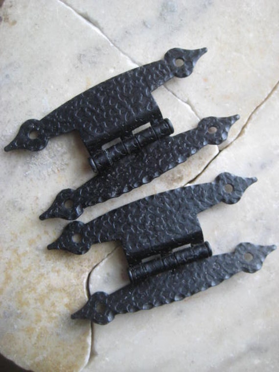 1 Pair Vintage Black Hammered Metal Spade Hinges by StarPower99