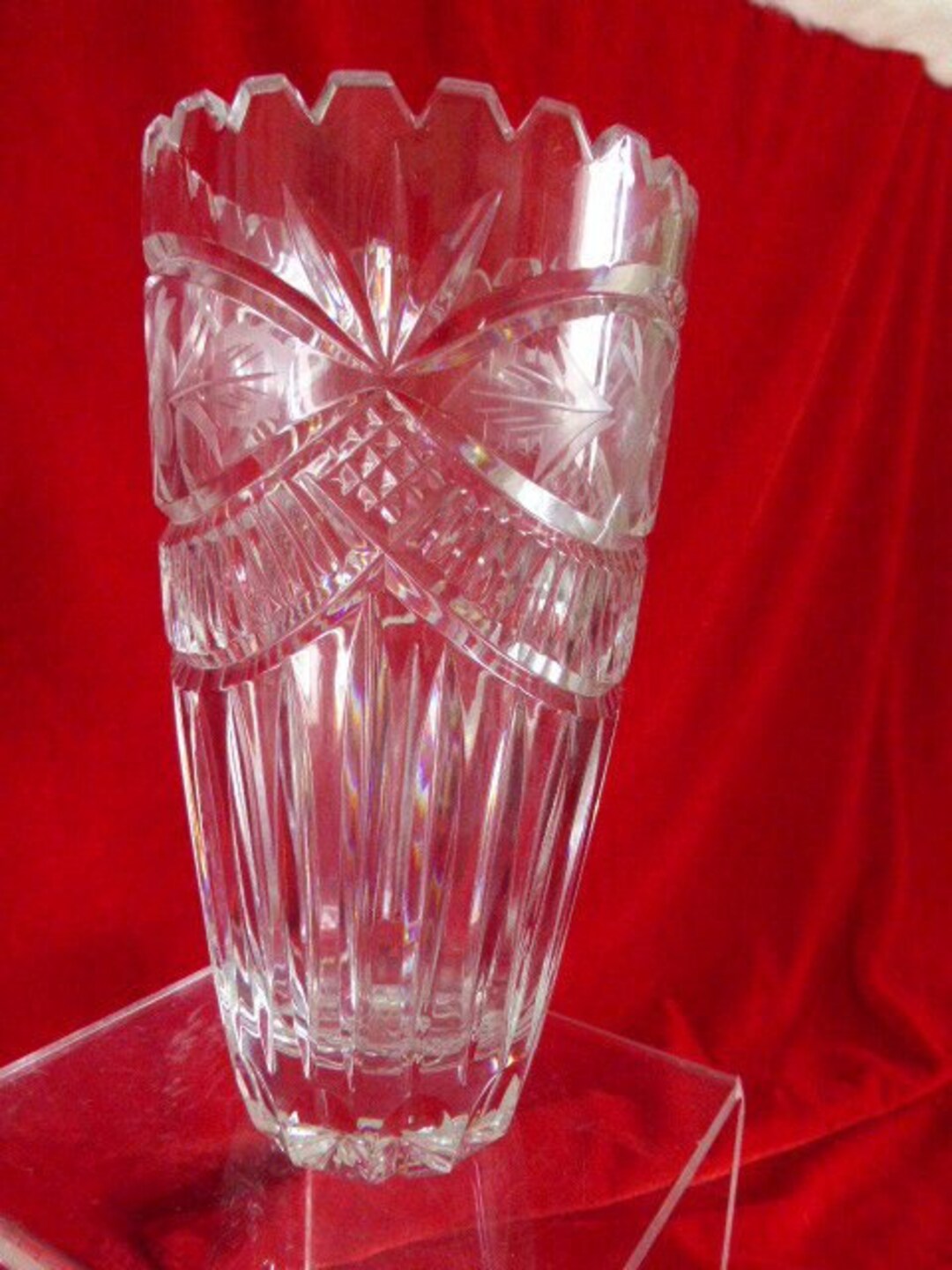 red and clear crystal vase lead crystal vase German crystal German Lead Crystal Vase Vintage german hand cut lead crystal glass vase 8 lbs floral sawtooth rim 12”h Each german lead crystal for sale was constructed with extraordinary care, often using stone, crystal and metal. Check out our german lead crystal vase selection for the very best in unique or custom, handmade pieces from our vases shops. If you find a logo or symbol,. German Lead Crystal Vase.