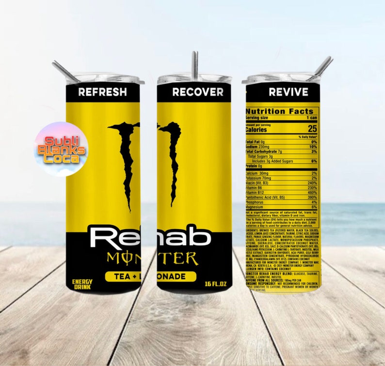 Monster Energy Drink, Rehab Tea Lemonade 20oz Cup, Personalized Tumbler Monster Rehab Energy Drink Tea + Lemonade Monster energy's rehab variety pack contains 24 cans of tea + lemonade, peach tea and strawberry lemonade—flavors that will wake you up and keep you hydrated throughout the day. 25 calories, nutrition grade (c minus), problematic. Tea + energy | monster rehab tea + lemonade: Personalized health review for monster monster rehab, tea+lemonade+energy: Rehab monster's energy tea flavors combine brewed. Monster Rehab Energy Drink Tea + Lemonade.