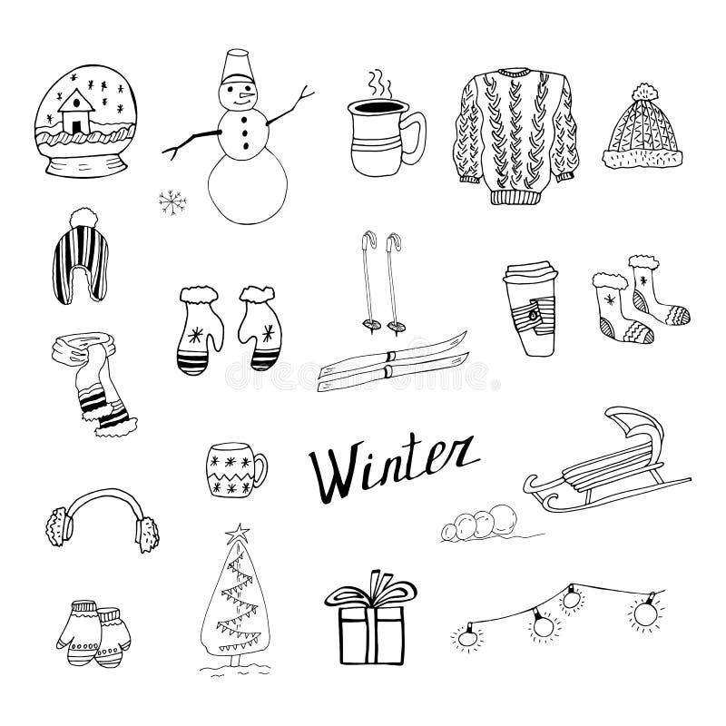 black and white winter set, doodles, winter entertainment, icons, hand drawing 11538096 Vector Winter Items To Draw — winter is a time to stay inside and cozy up with a blanket, some hot cocoa, and a good book. winter is the perfect season to cozy up with a warm drink, a fuzzy blanket, and your favorite sketchbook. But it’s also the perfect. — the perfect art hub for winter drawings! Learn how to draw. Winter Items To Draw.