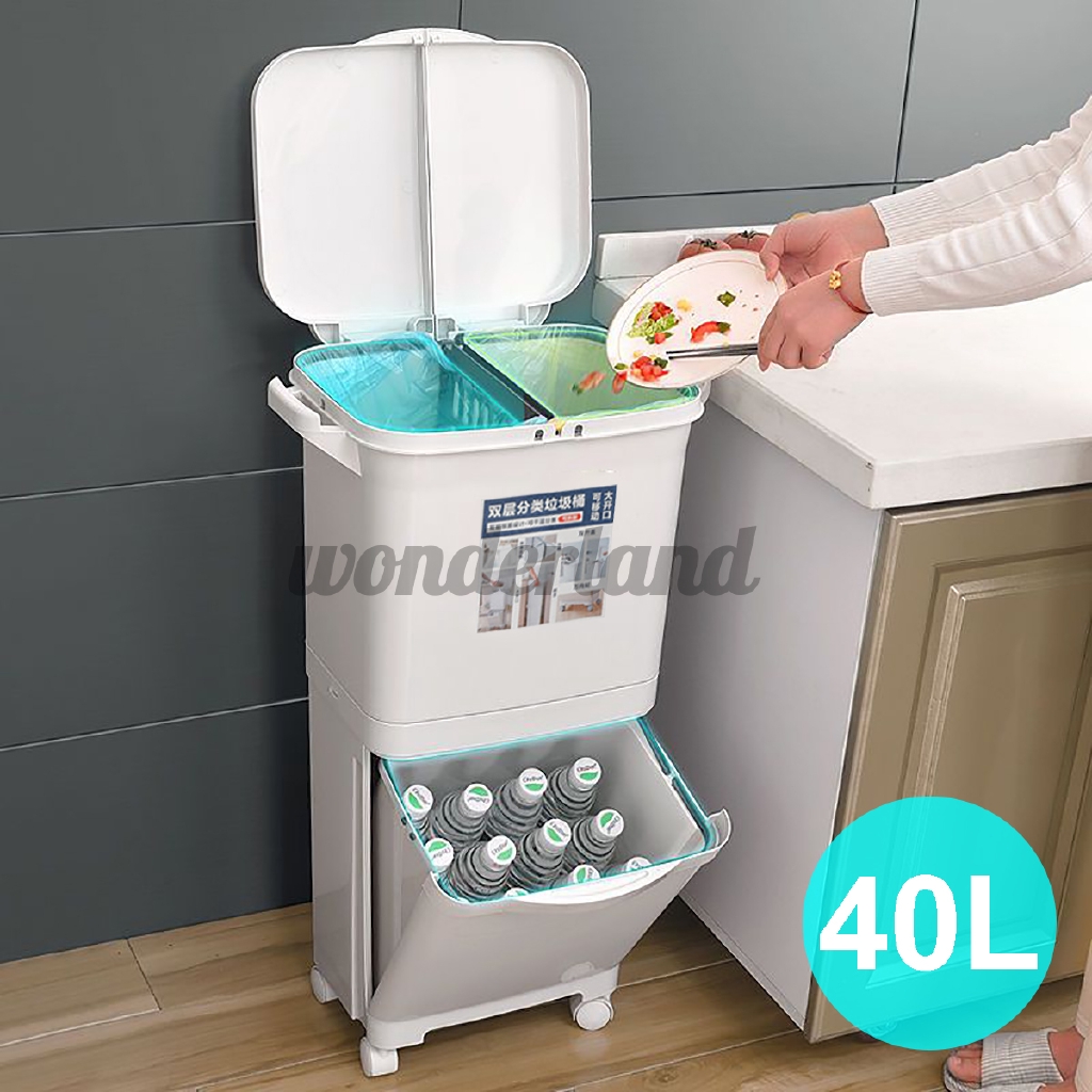 40L Plastic Large Double Layers Trash Can Kitchen Waste Sorting Bins Kitchen Waste Bin Double buy trash cans & waste rubbish bins | kitchen ware, crockery and bakeware | fortytwo singapore | furniture & home. Here are the 10 best dustbins that you can have in any corner of your home. explore our kitchen cupboard waste and recycling bins, lidded bins, and support frames. The 2 x 32l kitchen bin compartments hang from.. Kitchen Waste Bin Double.