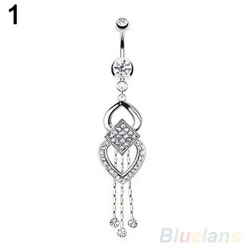 Women's Rhinestone Tassels Dangle Barbell Body Piercing Belly Navel Bar