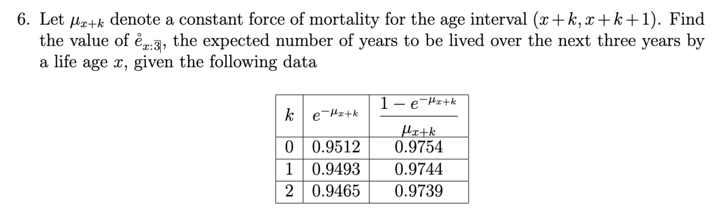 Solved 6. Let μx+k denote a constant force of mortality for