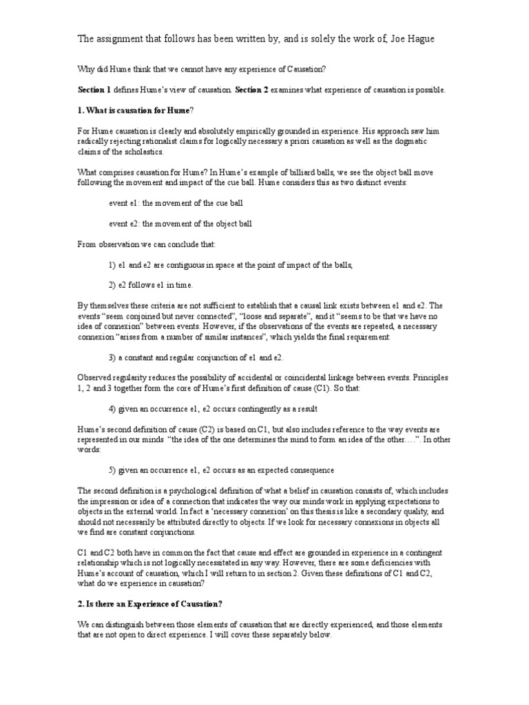 Hume On The Experience of Causation PDF Causality David Hume